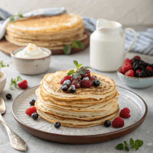 Блины на кефире получаются мягкими, нежными и эластичными. Благодаря кисломолочной основе они легко переворачиваются и редко рвутся, даже у новичков.
